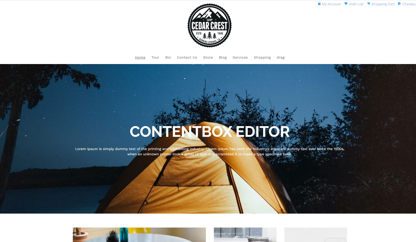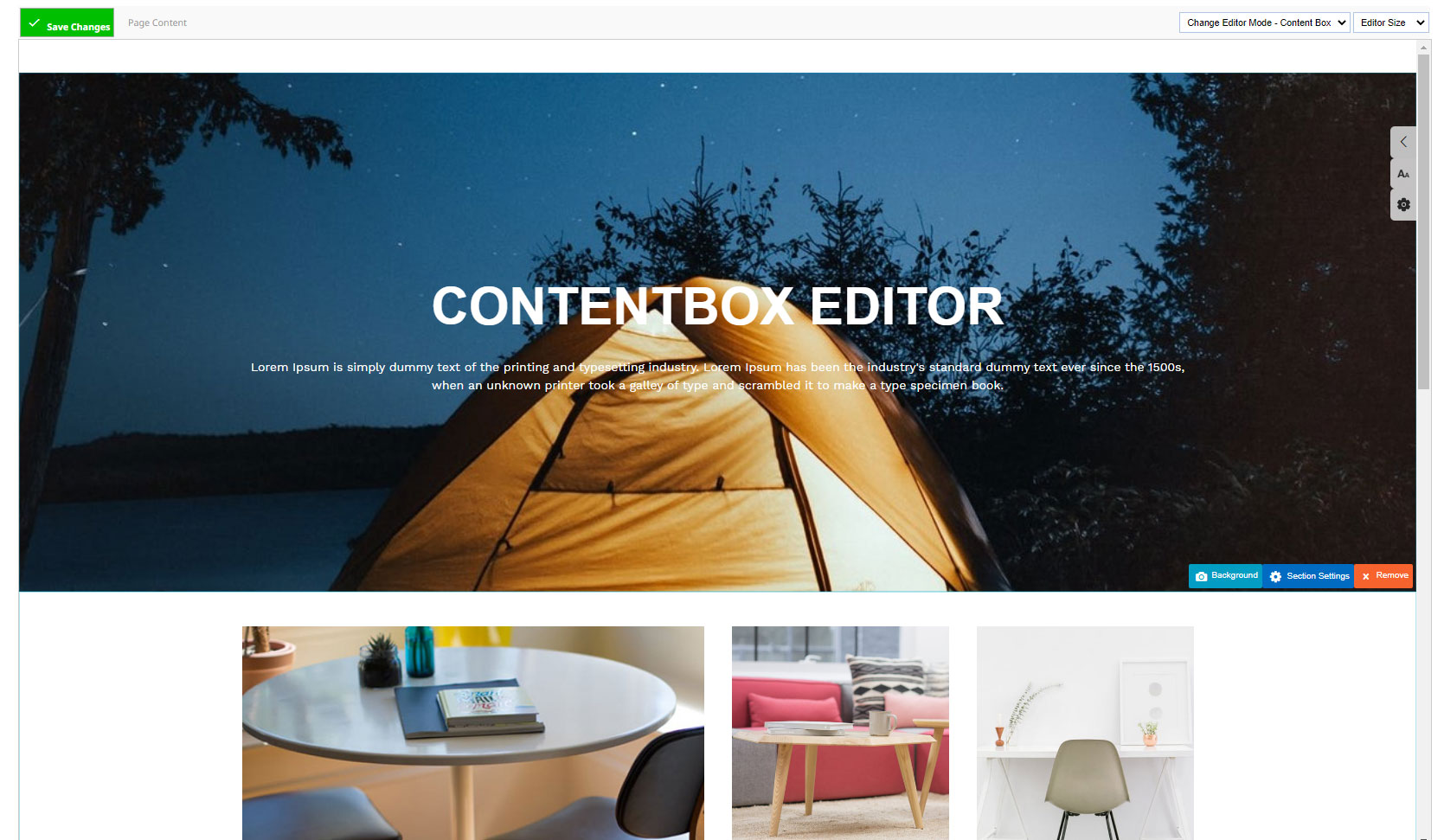 The Contentbox editor allows you to stack sections of content with different heights colours, background images etc.